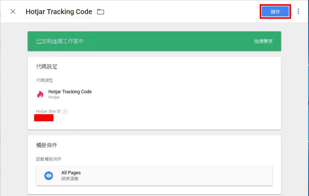 儲存hotjar代碼